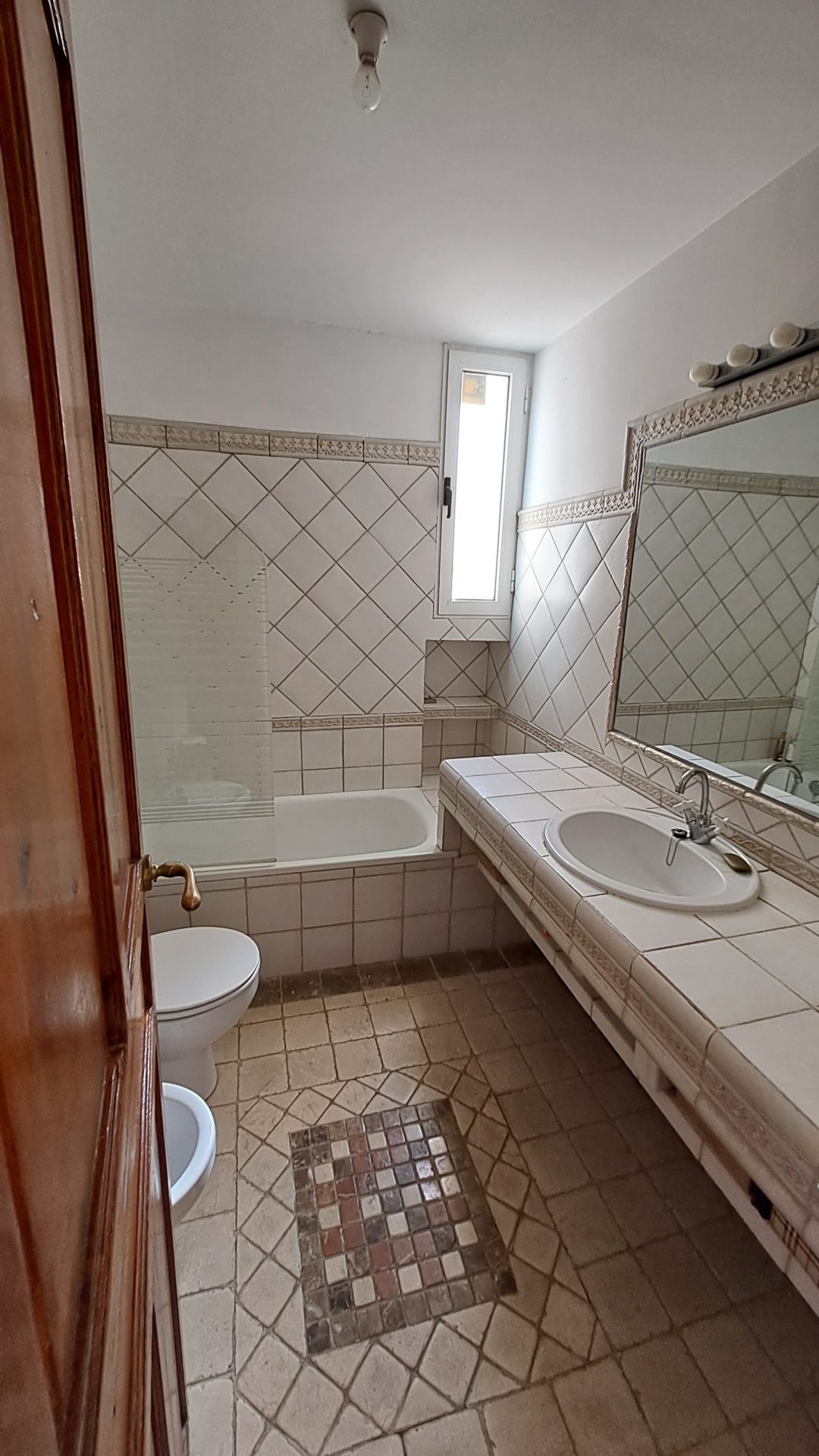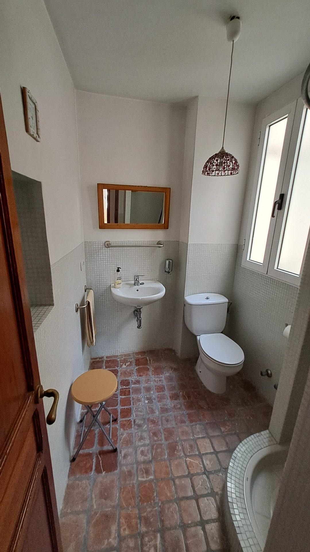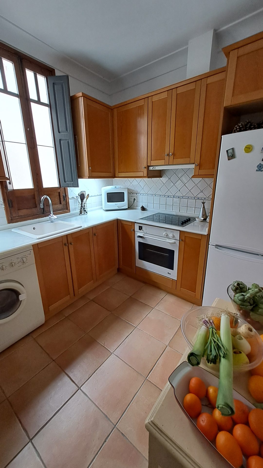 La cocina y los baños, de un carácter tradicional renovado, están bien resueltos. El aseo adicional y los múltiples armarios empotrados —incluso altillos— muestran una funcionalidad silenciosa, que no compite con la identidad patrimonial de la vivienda.