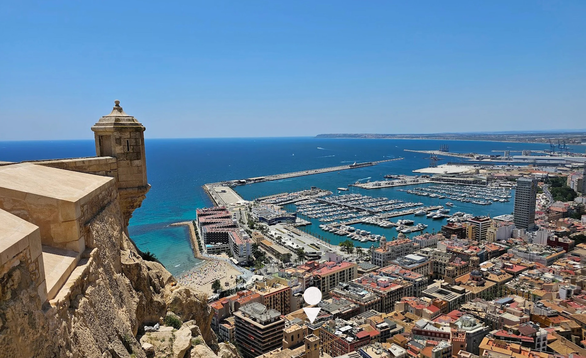 Desde su posición en el Casco Antiguo, se aprecian vistas directas a la Basílica de Santa María y al Castillo de Santa Bárbara. La playa del Postiguet y el puerto deportivo quedan a escasa distancia. A pesar de su céntrica localización, el interior ofrece una sensación de serenidad, amplitud y luminosidad poco común.